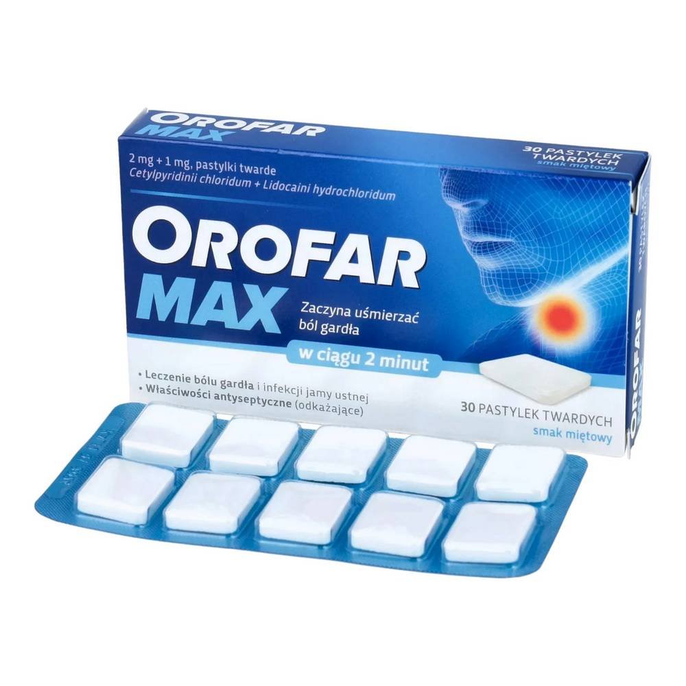 OROFAR MAX 30 is a highly effective throat lozenge designed to provide fast relief from sore throat pain and mouth infections. Its antiseptic and anesthetic properties ensure quick comfort and soothing action for your throat and mouth.