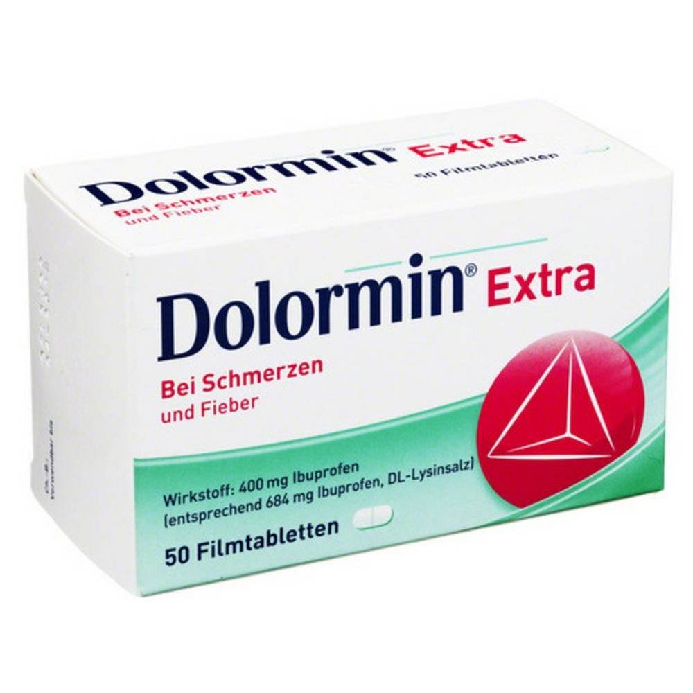 DOLORMIN Extra 50, ibuprofen, pain relief tablets, fever reducer, anti-inflammatory, headache treatment.