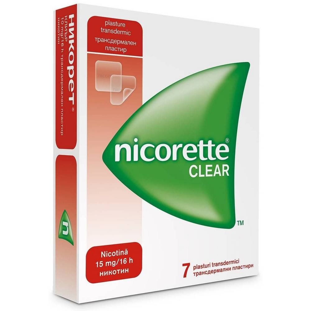 • Johnson & Johnson Nicorette Clear is a transdermal patch used to treat tobacco dependence in adults by relieving nicotine withdrawal symptoms, including cravings during a quit attempt. It contains pure nicotine that is absorbed through the skin over a period of 16 hours.