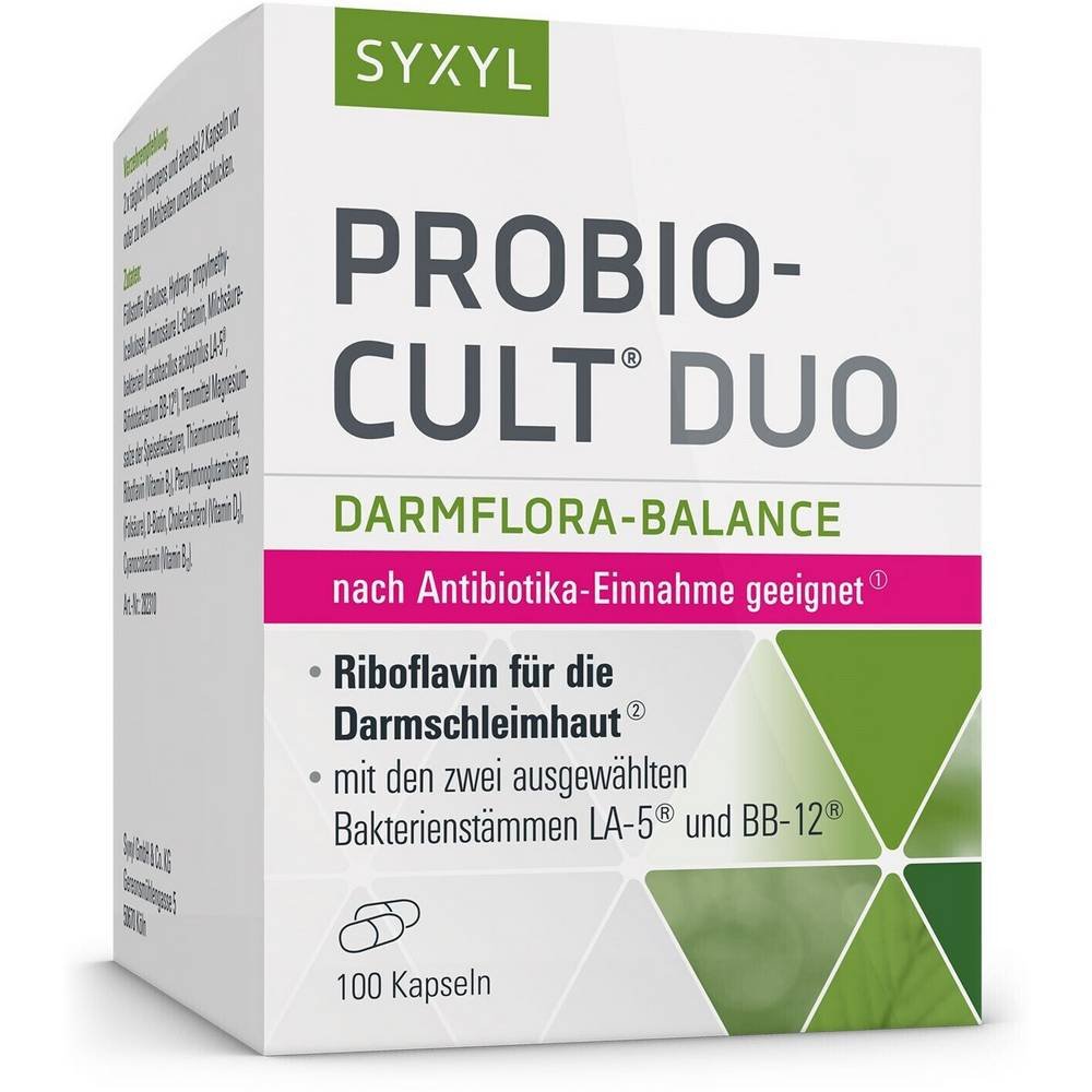 Probio-Cult Duo Syxyl (pack size: 100 pieces) is suitable for use after taking antibiotics and to strengthen the immune system. Probio-Cult Duo Syxyl capsules (pack size: 100 pieces) contain folic acid, vitamin B12 and vitamin D, which contribute to the normal function of the immune system. Riboflavin supports the normal function of mucous membranes, including the function of the intestinal mucosa.