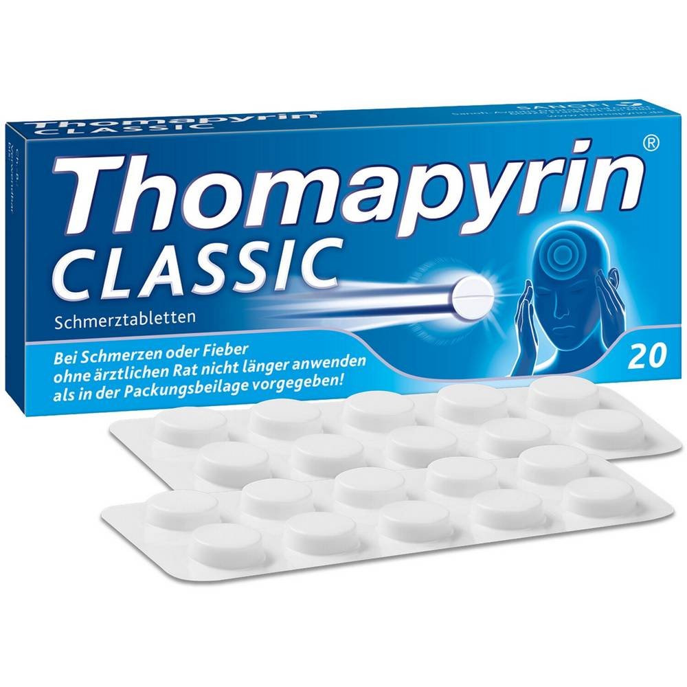 Thomapyrin Classic 20, headache relief, migraine relief, painkiller, Sanofi-Aventis, fast pain relief, analgesic tablets.
