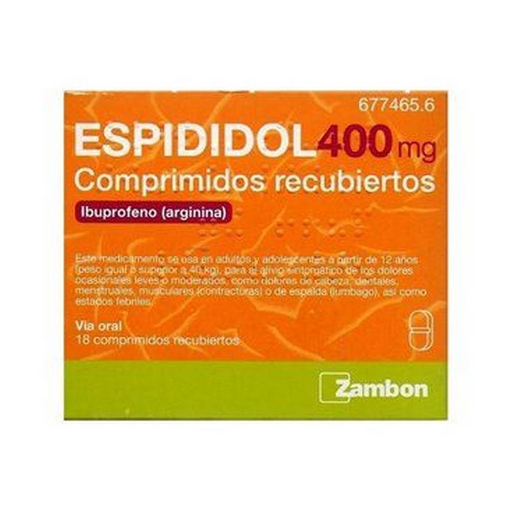 Zambon Espididol, 400mg ibuprofen, pain relief, fever reducer, anti-inflammatory, headache relief, muscle pain, arthritis treatment, toothache relief.
