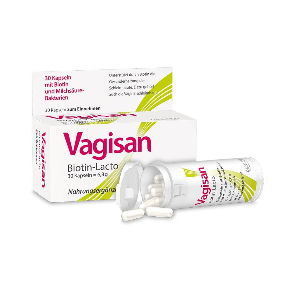 Las cápsulas Vagisan Biotin-Lacto contienen la vitamina biotina, vital para el cuerpo humano, así como bacterias de ácido láctico.
