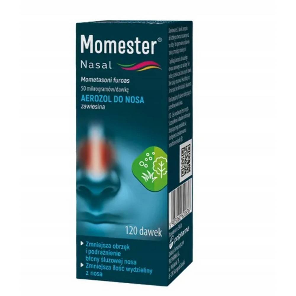 La acción de Momester Nasal es reducir la hinchazón y la irritación de la mucosa nasal. Gracias a ello, el spray alivia los síntomas de la fiebre del heno, que es una reacción alérgica al polen de los árboles, las malas hierbas, las hierbas o las esporas de hongos y mohos. El medicamento alivia los estornudos, la sensación de congestión nasal, el picor y reduce la cantidad de secreción nasal.