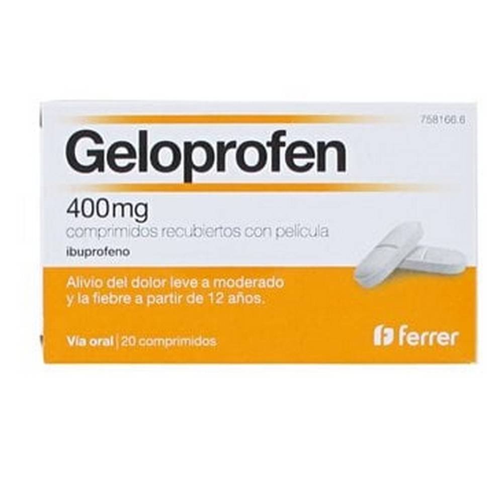Ferrer Geloprofen, 400mg ibuprofène, soulagement de la douleur, anti-inflammatoire, réducteur de fièvre, traitement des maux de tête, douleurs musculaires, gestion de l’arthrite.