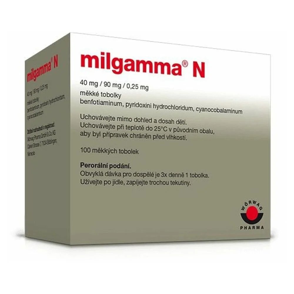 Milgamma N, gélules de vitamines B, soutien de la santé nerveuse, traitement des neuropathies, soulagement des névrites et névralgies, complexe vitamine B1 B6 B12, Milgamma 100 gélules molles.